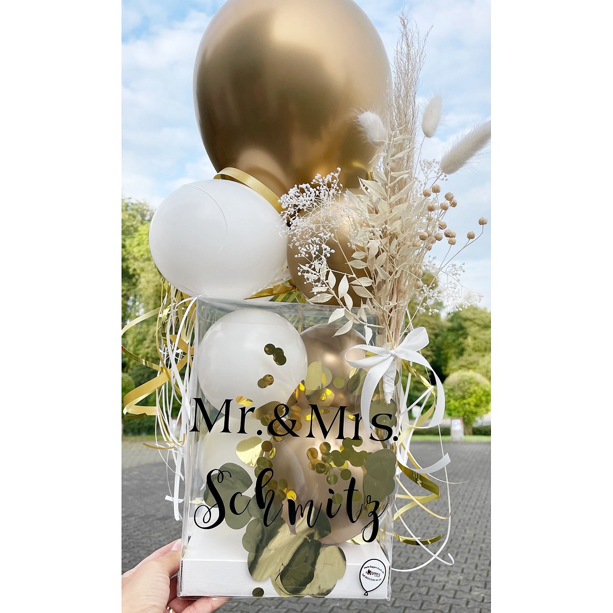 Möchtest Du mehr als nur ein Geschenk, das mehr als nur ein Geschenk ist? Unsere personalisierte Geschenkbox mit Ballon und Konfetti bietet Dir eine unvergessliche Geschenkidee und kann zu jedem Anlass angepasst werden indem Du deinen personalisiertem Text bei jeder Bestellung mit angibst. Sei es zum Geburtstag, zur Hochzeit oder einfach nur um Danke zu sagen, es sind keine Grenzen gesetzt und der Beschenkte wird sich über die persönliche Botschaft freuen.